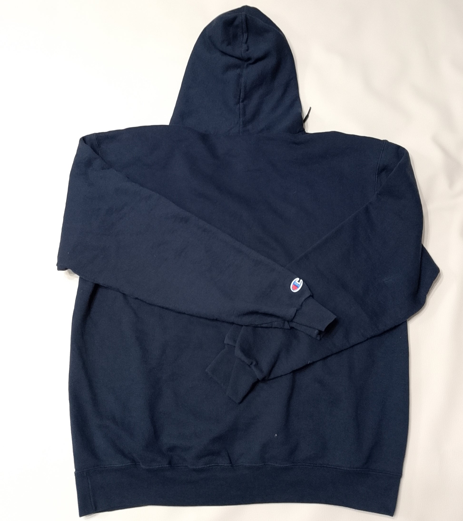 Colore blu navy tinta unita, stampa centrale in bianco.