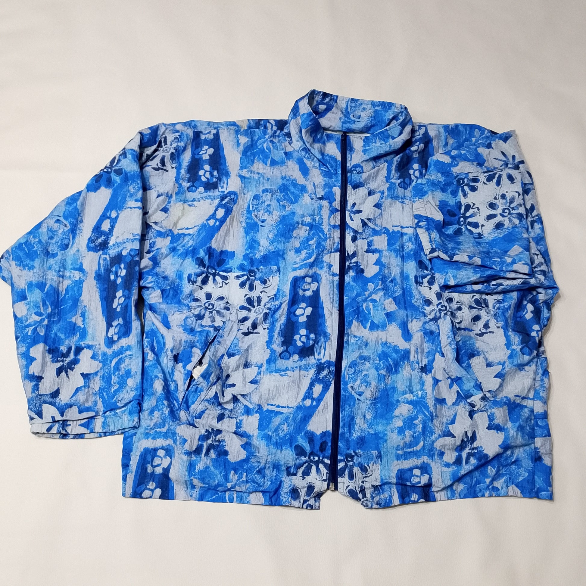 kway con stampa floreale blu e bianca